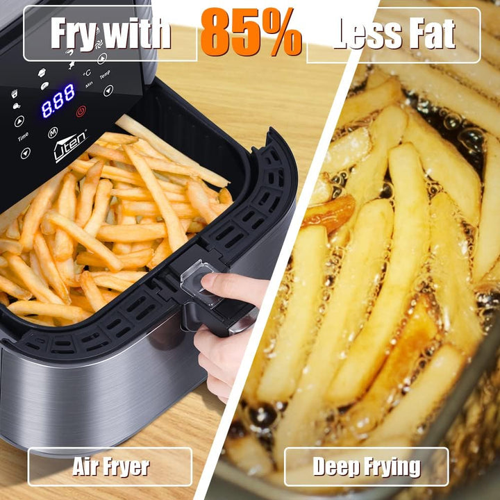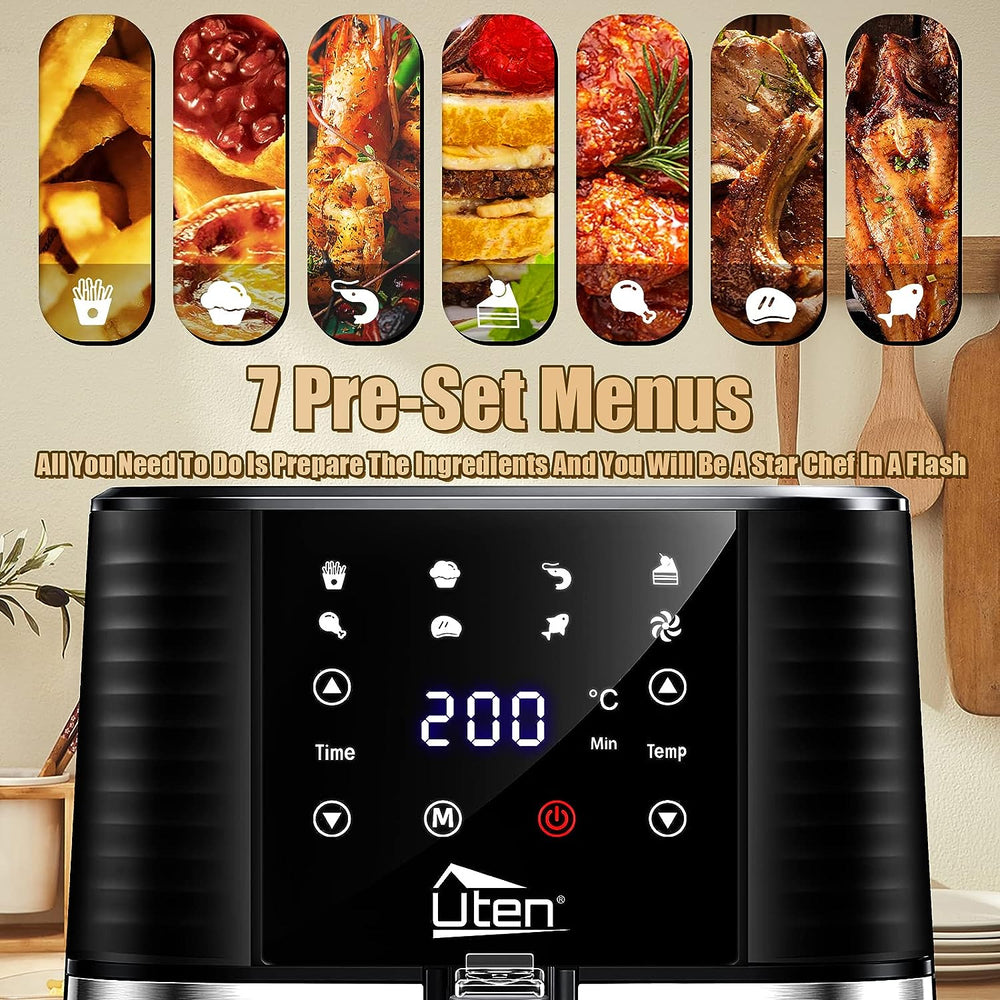 - 【Gesundes Kochen】: Uten ist immer auf der Suche nach der leckersten und gesündesten Art zu kochen, und die Uten Heissluftfritteuse macht gesundes Kochen einfacher als je zuvor. Sie können im Handumdrehen alle Arten von köstlichen Gerichten auf