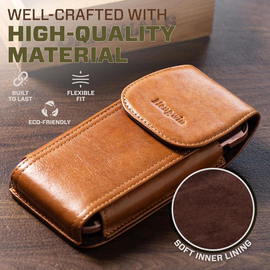 - ECHTES LEDERDESIGN: Hergestellt mit hochwertigem echtem Leder aussen und einem weichen Neopren-Innenfutter zum Schutz des aufbewahrten Telefons;Leder hält sehr gut mit schöner Farbe und Haptik.