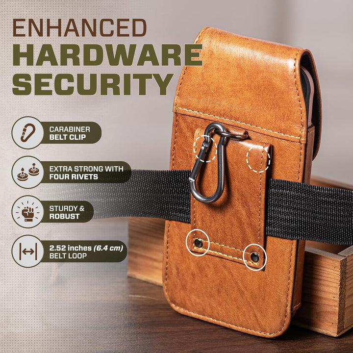 - STABILE GÜRTELSCHLAUFE: 5,89 cm breite Gürtelschlaufe für Standardgürtelgrössen;Aus leicht dickerem Leder;solide mit ausgezeichneten Metallnieten (4 Stück - eine an jedem Belastungspunkt) und genähtem Gürtelschlaufensystem;um es sicher an