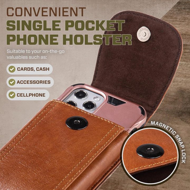 - GESICHERTES HANDYHOLSTER-DESIGN: Gesichert mit einer Lederverklappung mit selbstschliessendem Magnetverschluss;um das Risiko des Herausfallens des Telefons zu verhindern;Offenes Design oben für einfachen Zugriff;mit unteren Luftlöchern zur