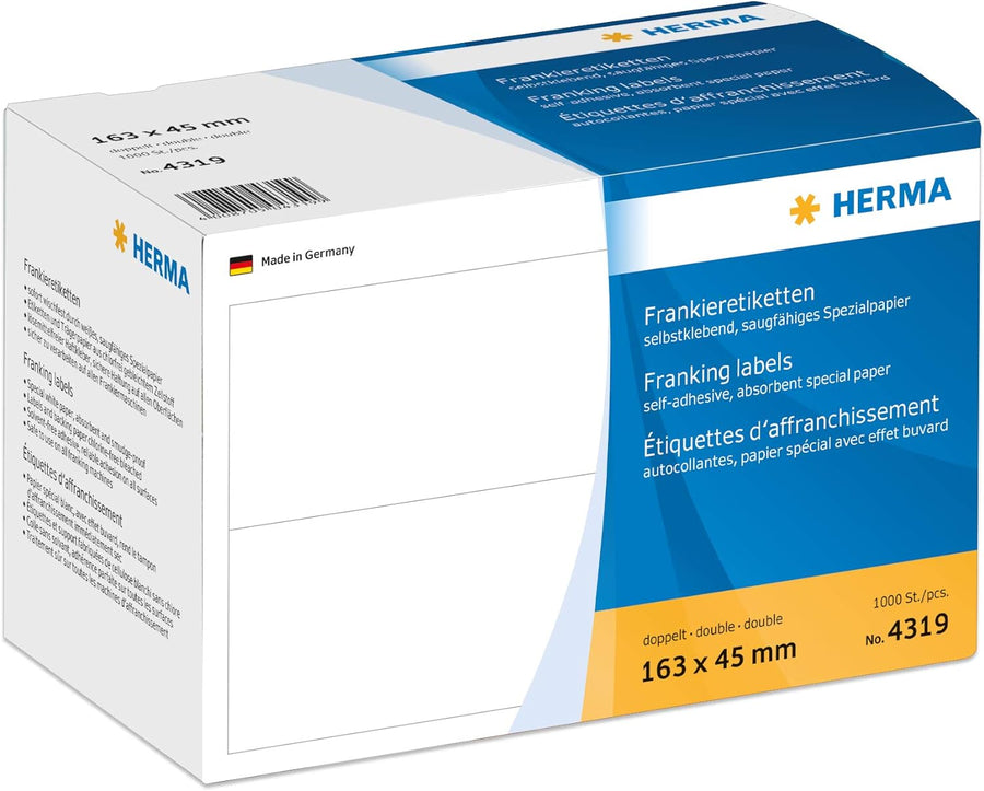 - Lieferumfang: 1000 x HERMA Frankieretiketten, 163 x 45 mm, rechteckig, weiss