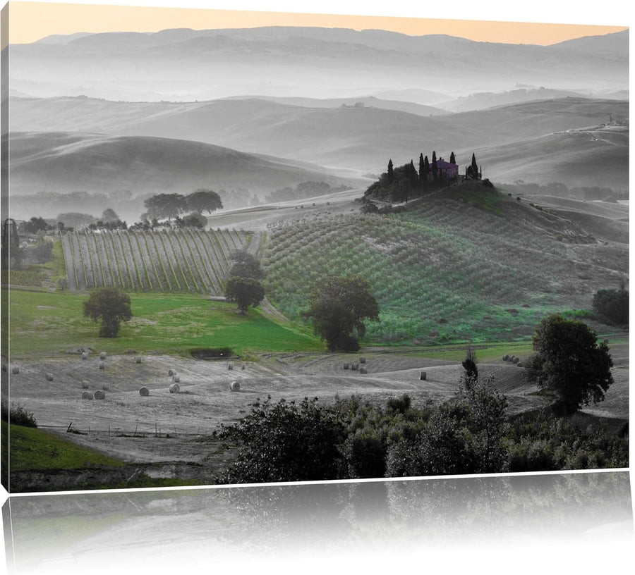 herrliche Toskana Landschaft schwarz/weiss Format: 100x70 auf Leinwand, XXL riesige Bilder fertig ge