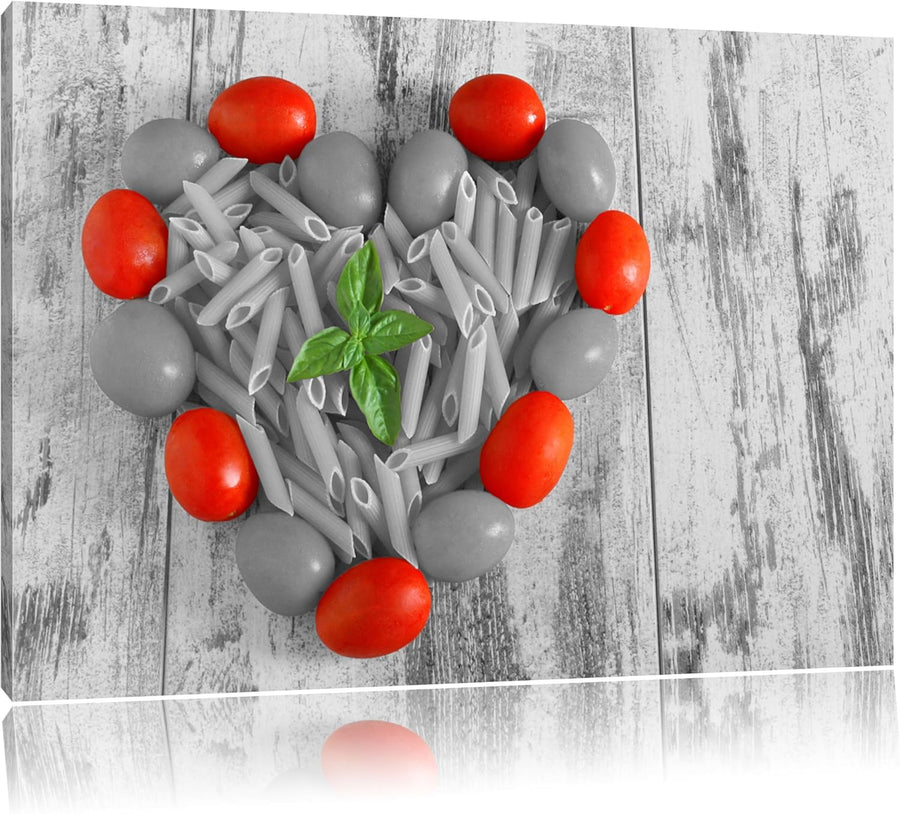 Herz aus Tomaten, Nudeln und Basilikum schwarz/weiss Format: 100x70 auf Leinwand, XXL riesige Bilder