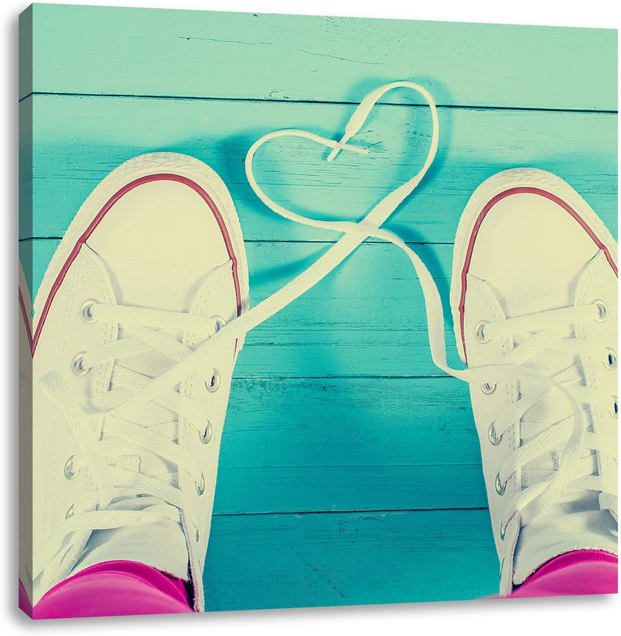 Herzform aus Schnürsenkeln, Format: 70x70 auf Leinwand, XXL riesige Bilder fertig gerahmt mit Keilra