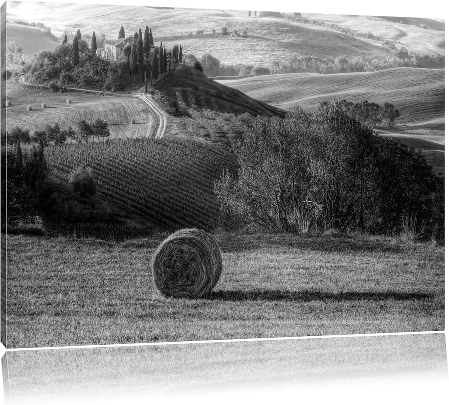 Heuballen in der Toskana Landschaft schwarz/weiss Format: 100x70 auf Leinwand, XXL riesige Bilder fe