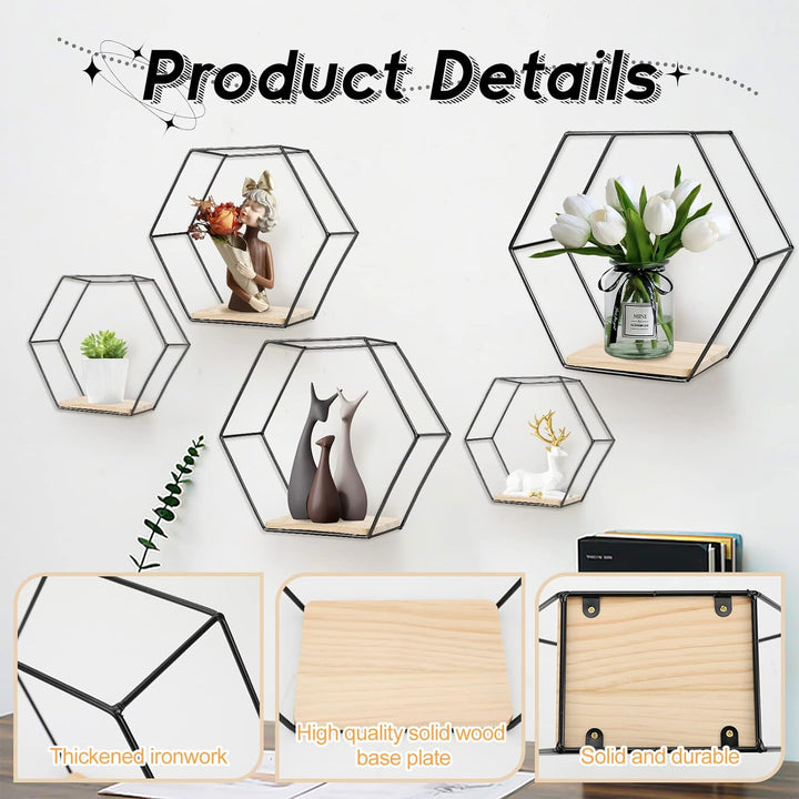 - Gute Materialien: Das Hexagon Wandregal besteht aus starkem Metall und Holz, Die robusten Spanplatten und Stahlhalterungen sorgen für eine lange Gebrauchsdauer, eine gute Stabilität und hat eine hohe Tragfähigkeit.
