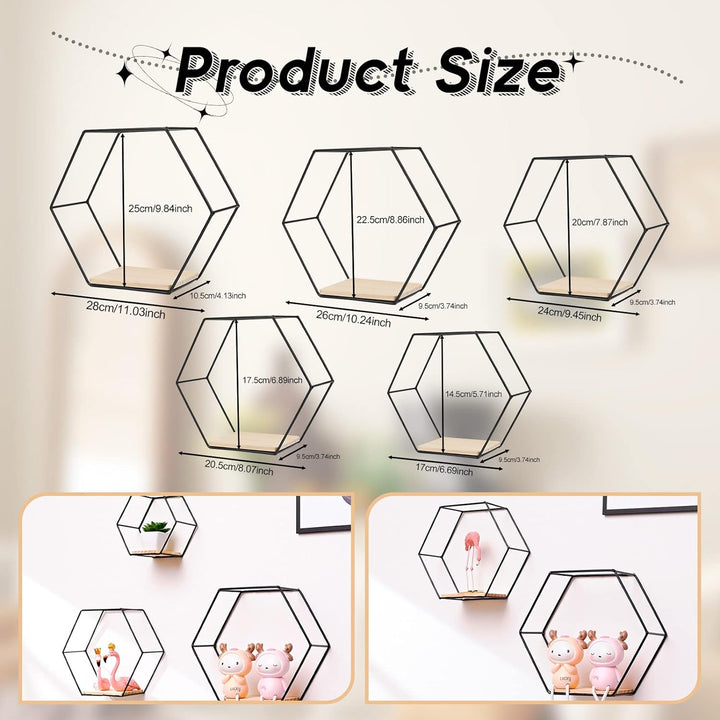 - 5er Set: Dieses Set enthält 5 Wand-Sechskantregale. Dadurch können Sie die Metallregale unterschiedlicher Grössen individuell neben und untereinander platzieren, sowie sie einzeln in verschiedenen Räumen anbringen. Sie können des Layout an der Wand