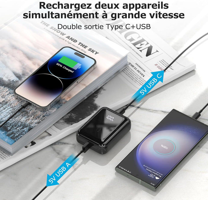 - 【2 Geräte zusammen tanken】Die Powerbank 10000mAh lädt 2 Geräte gleichzeitig über den PD-USB-C-Anschluss und den QC4.0-USB-Ausgangsanschluss. Kein Anstehen mehr beim Laden. Das Zwei-Port-Design ermöglicht es Ihnen, tragbare Stromversorgung mit
