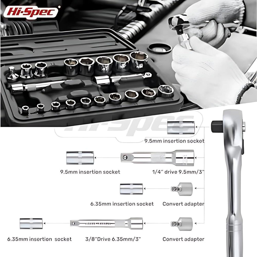 Hi-Spec 22-tlg. Steckschlüsselsatz 1/4 und 3/8 Zoll – Metrisches Mini Ratschen Set mit Ratschenschlü