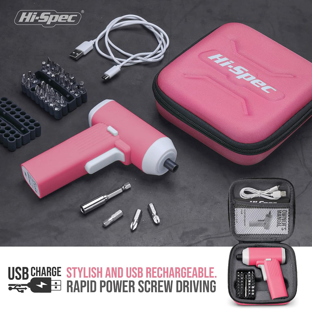 - MACHT SCHRAUBEN NICHT LANGWEILIG: Mit dem Hi-Spec 3.6V USB Electric Power Kabellosen Schraubendreher & Bit-Set können Sie ein wenig Flair in das Heimwerken bringen. Stilvoll und wiederaufladbar, ist er unverzichtbar für die schnelle Schraubbefestigung