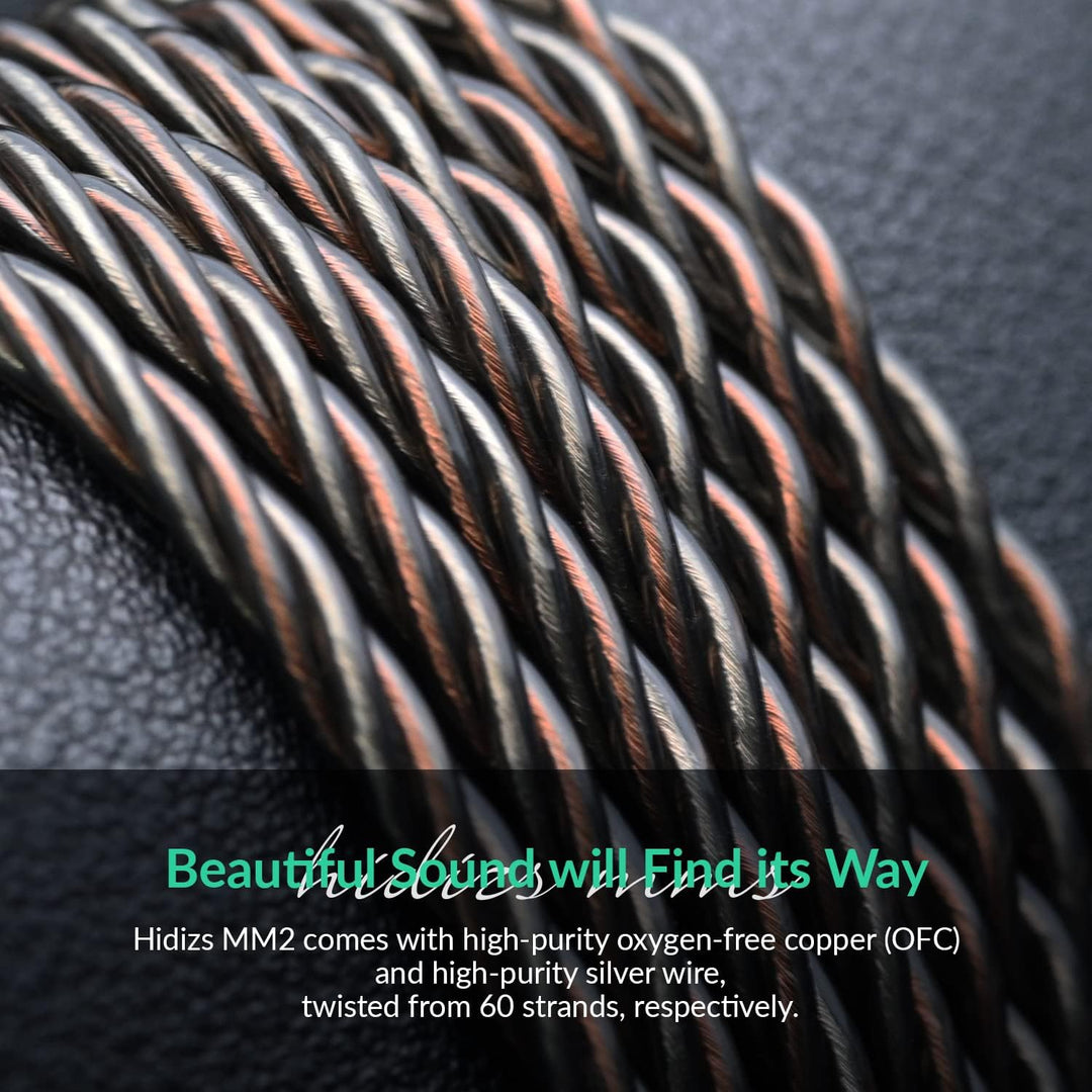 - ♫【Schöner Klang wird seinen Weg finden】Hochwertige Kabel sind der wesentliche Bestandteil professioneller HiFi-Ohrhörer. Hidizs MM2 kommt mit hochreinem, sauerstofffreiem Kupfer (OFC) und hochreinem Silberdraht, gedreht aus 60 Strängen. Silberne