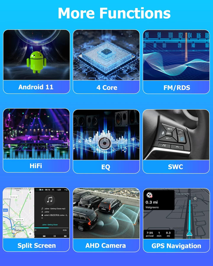 - Android Autoadio mit Navi und WiFi: CarPlay Radio mit Navigation, das Sygic, iGo und andere mit dem Android Betriebssystem kompatible Navigationssoftware unterstützt. Offline/Online Karten können Ihre Fahrtrouten planen und sicherer, schneller und