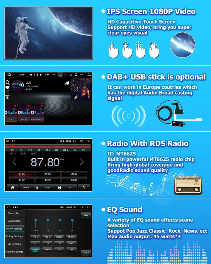- FM/RDS Radio und Bluetooth: Hochwertiges FM/RDS Radio mit 30 voreingestellten Sendern. Das Android Autoradio für Fiat 500 ist mit Bluetooth 4.0 ausgestattet, das Bluetooth Freisprechfunktion, Bluetooth Musikwiedergabe und Herunterladen von