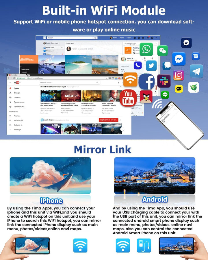 - Mirror Link für iOS/Android: Dieses Bluetooth-Autoradio unterstützt über Original-USB-Kabel, können Sie Ihr Telefon Seite auf dem HD-Touchscreen dieses Auto Bluetooth-Radio mit Satellitennavigation synchronisieren. Android unterstützt