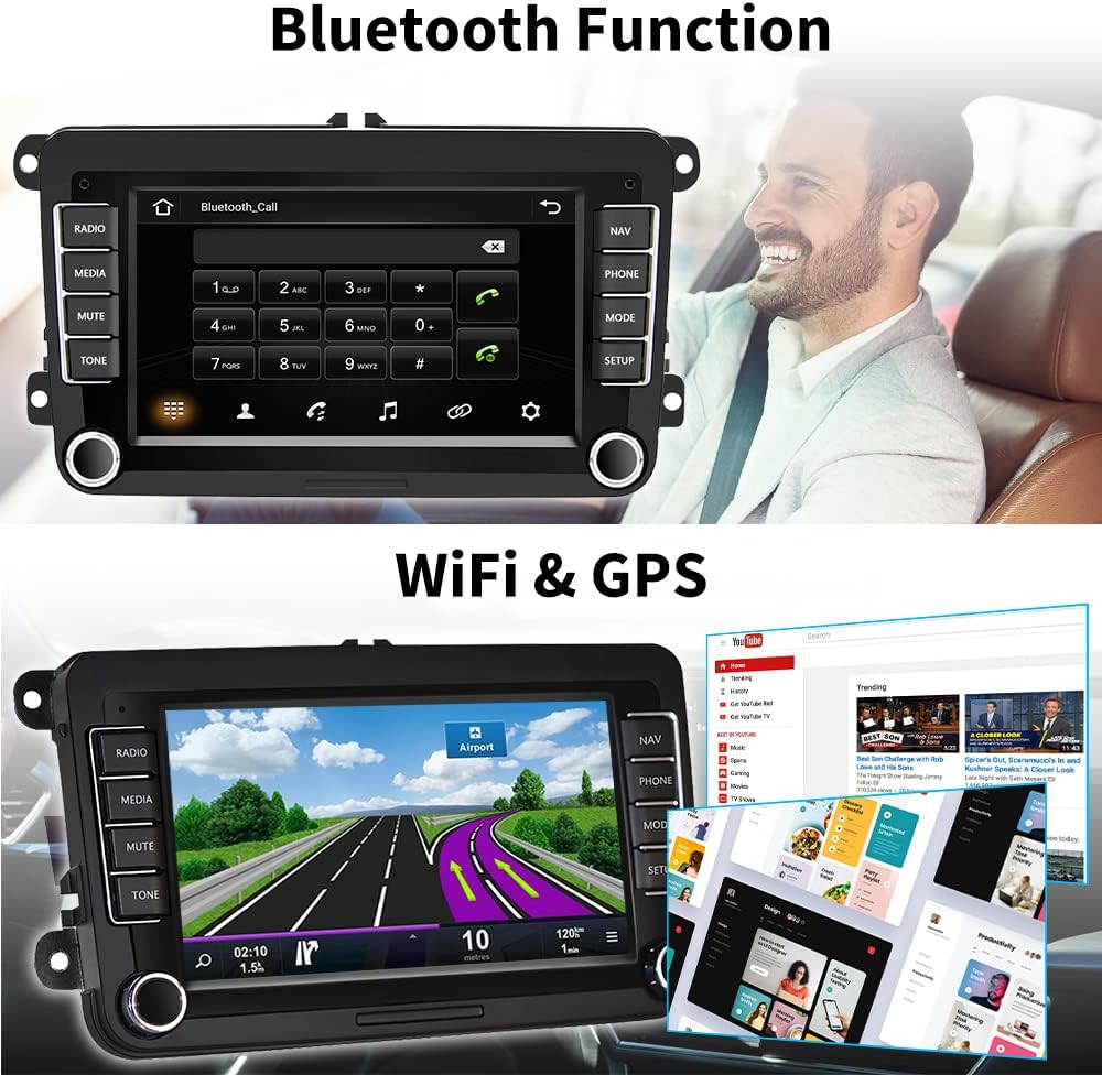 - 🚗【GPS Navi & WiFi】Autoradio für VW mit integriertem GPS für Offline- und Online-Kartennavigation. Sie können sich mit Ihrem Heim-Wi-Fi oder Hotspot verbinden, um auf das Internet zuzugreifen. Aus dem Play Store heruntergeladene Apps wie Karten,