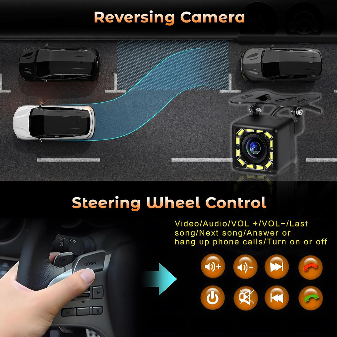 - 【Rückfahrkamera】: Das einziehbare Autoradio 1din mit Bildschirm enthält eine kostenlose wasserdichte 8-LED-Rückfahrkamera. Sie können sie rückwärts verwenden, um die Situation hinter dem Auto für ein sicheres und schnelles Rückwärtsfahren zu beobachten.