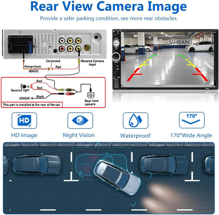 - ⭐【Rückfahrkamera & SWC】Das 2-DIN-Autoradio mit Bildschirm ist mit einer wasserdichten Rückfahrkamera ausgestattet, die das Rückwärtsfahren sicherer und bequemer macht! Auf diesem 7-Zoll-Touchscreen wird automatisch das umgekehrte Bild