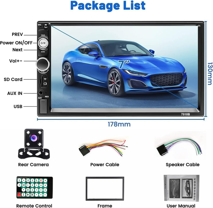 - ⭐【2-Din-Bluetooth-Autoradio】Radiogrösse: 178 (L) * 102 (B) * 64 (T) mm/7,0 * 4,02 * 2,52 Zoll; mit 7-Zoll-Voll-Touchscreen. Dieses digitale Autoradio ist mit U-Disk, AUX-In und TF-Karte kompatibel und unterstützt Subwoofer-Ausgang, externen