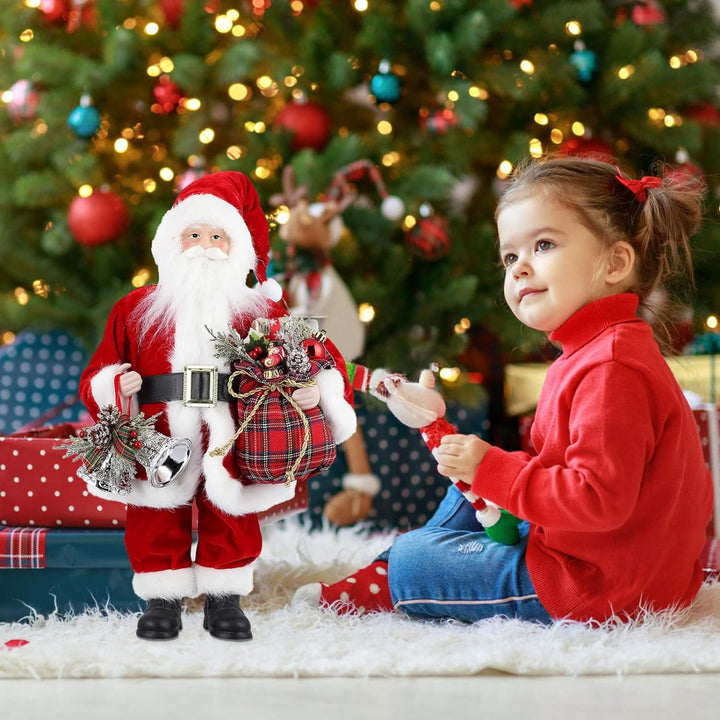 - Traditionelles Weihnachtsmann-Design: Diese weihnachtliche Puppendekoration versprüht nostalgischen Charme, klassisches Weihnachtsmann-Bild, süsse Weihnachtsmütze und rote Kleidung, lächeln Sie immer und tragen Sie eine Geschenktüte. Das süsse Bild