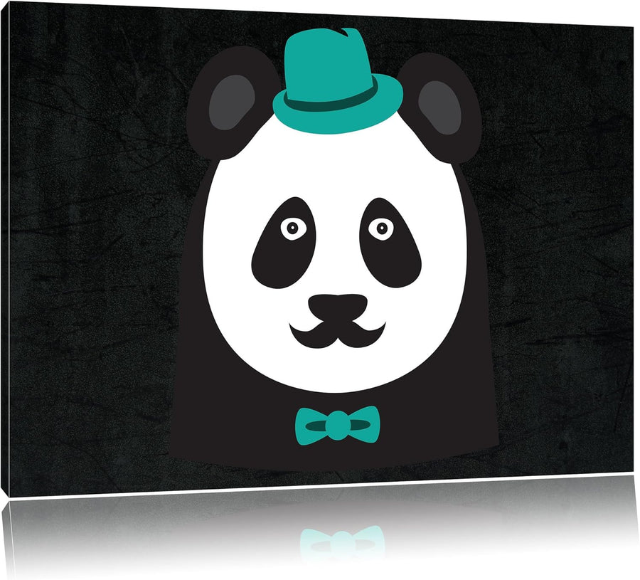 Hipster Panda schwarz, Format: 100x70 auf Leinwand, XXL riesige Bilder fertig gerahmt mit Keilrahmen