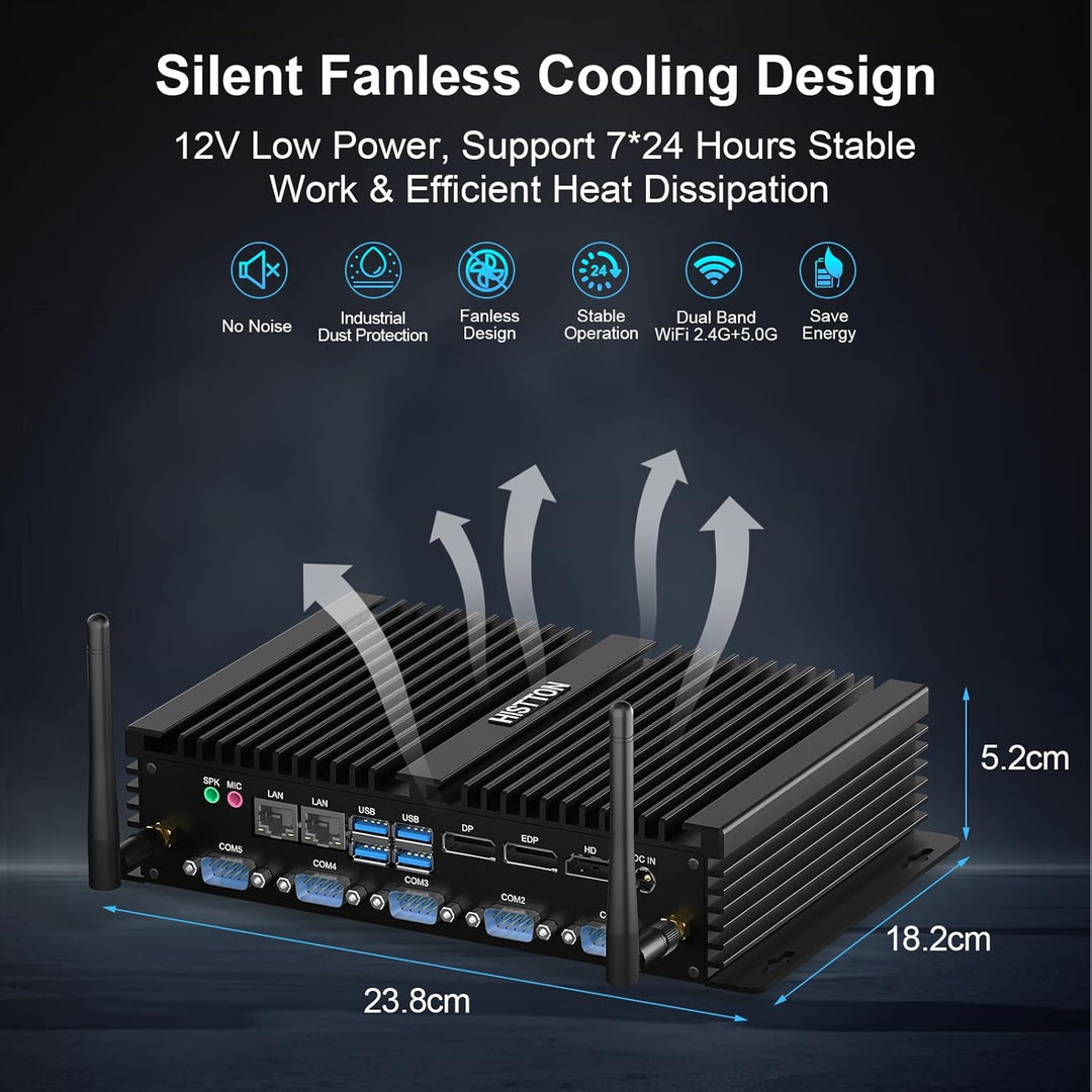 - 【 Lüfterlos&energiesparend&umweltfreundlich】Unser Mini-PC ist ein lautloser lüftloser Computer mit aus gebürstetem metallischem Material hergestelltem Gehäuse. Keine Sorge für Wärmeableitung. Dieser Grafik-Desktop-Computer verfügt über