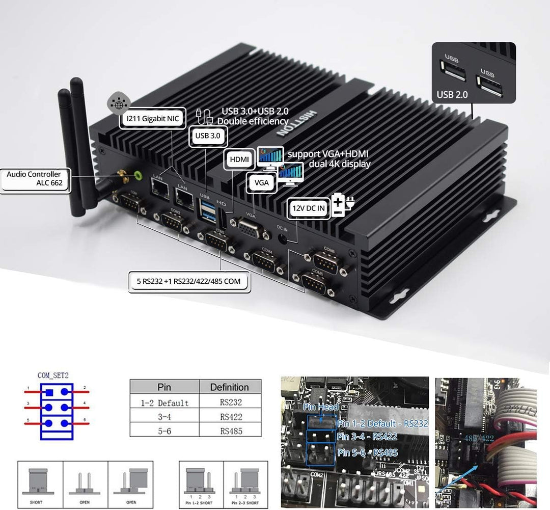 - 【Dual screen 4K output】HISTTON K4 industrial PC supports HDMI and VGA dual screen display. It can use personal computer, or be used as HTPC to set up your home theater, meaning that you can use it in your office, training center, factory, internet