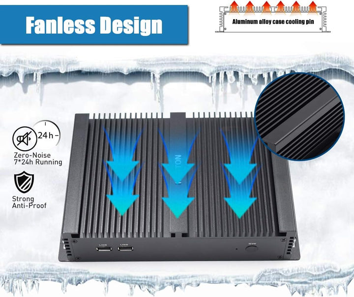 - 【Fanless Cooling Design & Energy Saving】This mini computer featured by noise-free, fanless design and brushed aluminum shell has excellent durability and heat dissipation; say goodbye to the worry of heat dissipation; compared with the consumption of