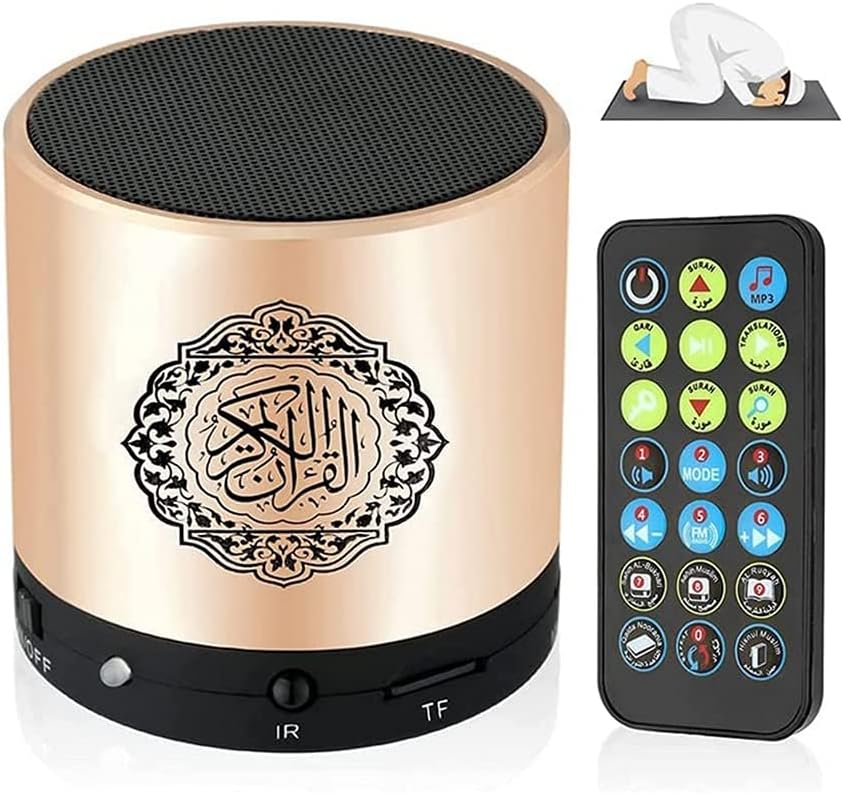 - Mit Fernbedienung: Verwenden Sie die Fernbedienung, um den Koran-Lautsprecher zu steuern und geniessen Sie den Spass, den gesamten Koran zu rezitieren.