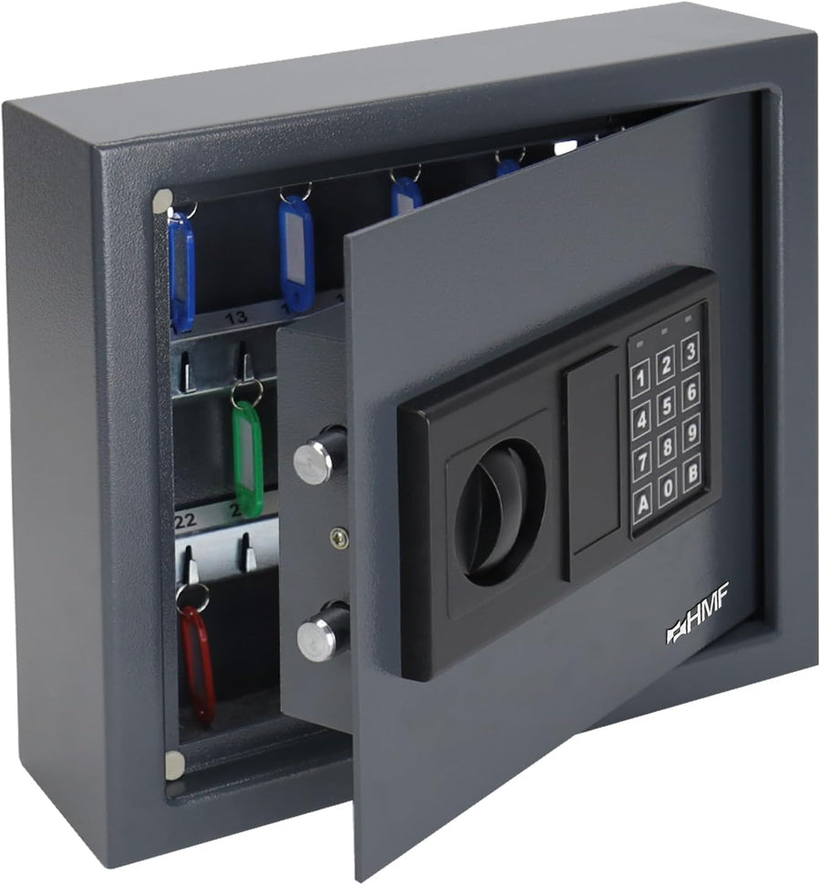 HMF 2030-11 Schlüsseltresor mit Elektronikschloss | 30 Haken | 30 x 28 x 10 cm | Anthrazit, 30 Haken
