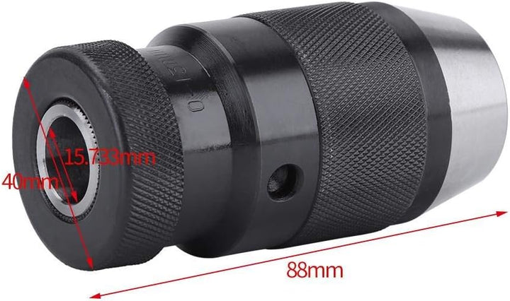 • 【Technische Daten】Typ: B16; Material: 45 # Stahl; Kapazität: 0-13 mm (1/2 "); Innendurchmesser: 15,733 mm (0,61"); Aussendurchmesser: 40 mm (1,57 "); Länge: 88 mm (3,46")