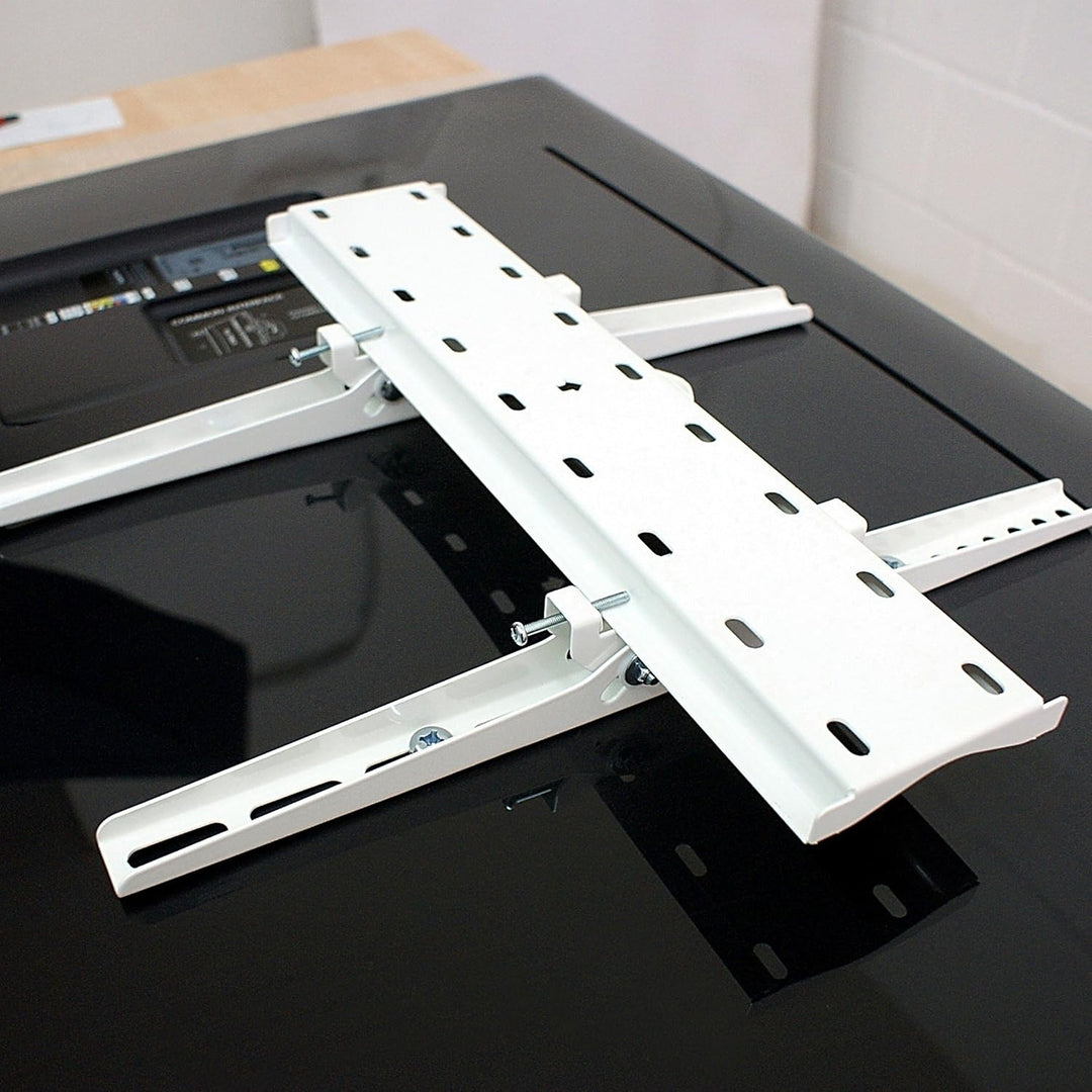 - STUFENLOS NEIGBAR: Aufhängung ist über Drehknöpfe individuell und stufenlos um 12° nach oben und unten neigbar | Schienen an der Halterung sind ausserdem horizontal verstellbar | Geringer min. Wandabstand von nur 5,3 cm | Hohe Tragfähigkeit von 40 kg