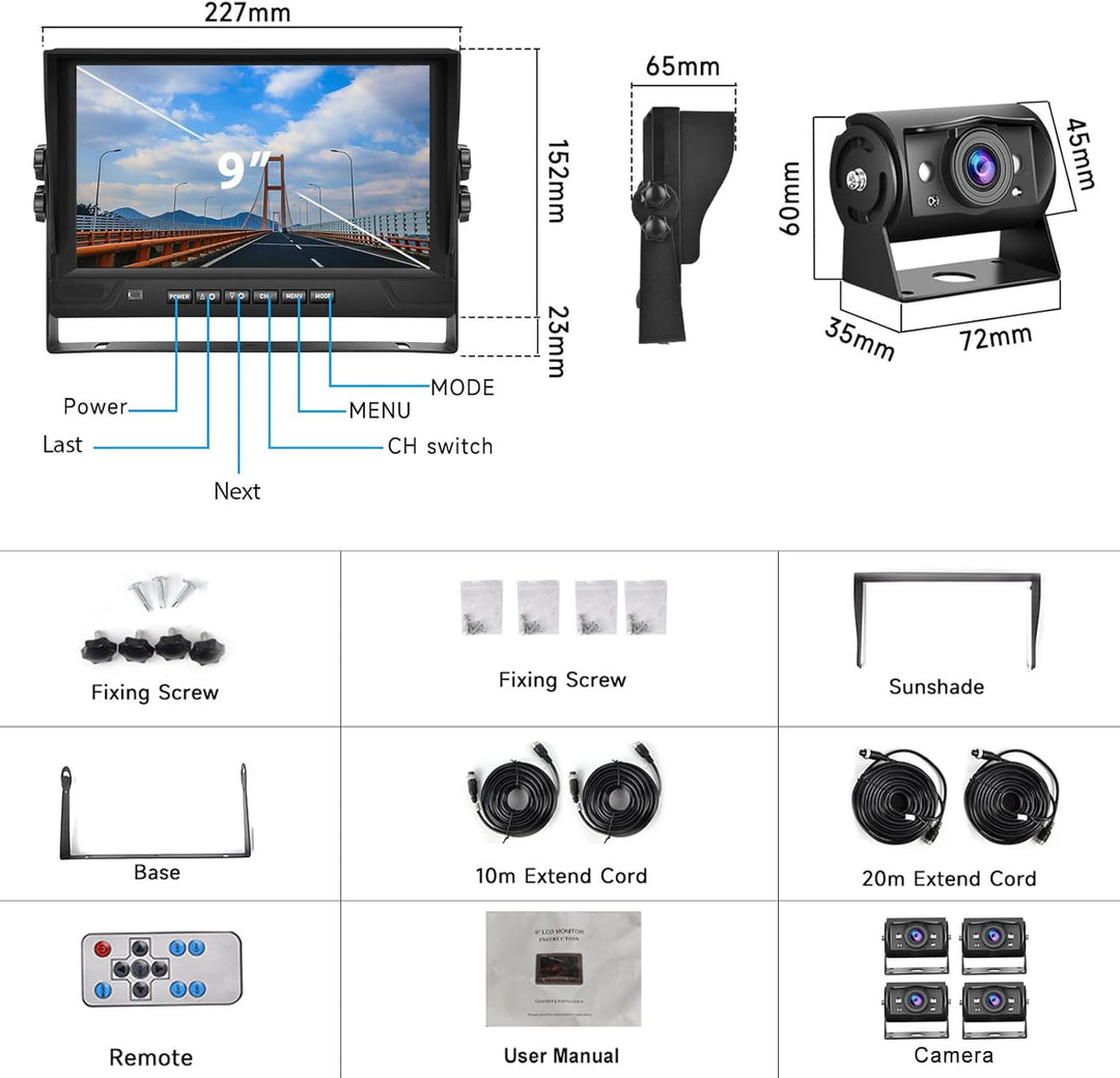 - 【9-Zoll-IPS-HD-Monitor】Large Monitor nimmt IPS-Panel, die die lebendigen Bilder und hervorragende Farbgenauigkeit zu halten, um die beste Fahr / Rückwärtsfahrt Erfahrung zu gewährleisten. Mit nativer Auflösung von 1920*1080, das