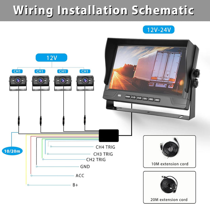 - 【Einfache Installation & Garantie】Das Paket enthält das gesamte Zubehör für das System, um die Installation zu erleichtern. Das Backup-Kamera-System kann direkt an eine 12v-24v Quelle Sicherungskasten / Power Point / Zündschalter für den
