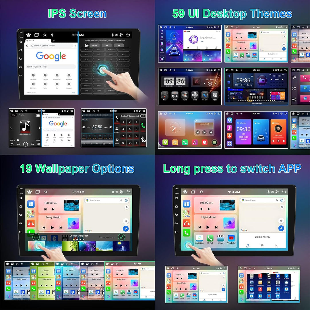 • 【Multifunktion】Touchscreen Autoradio ist kompatibel mit Lenkradsteuerung. Unterstützt Helligkeitseinstellung und 59 Benutzeroberflächen Einstellung. Passen Sie die APP-Anzeige Ihrer Startseite an. Geteilter Bildschirm. Unterstützt