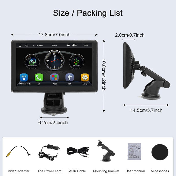 - đă7 Zoll HD Touchscreen CarPlay BildschirmăDer 7 Zoll HD Touchscreen Wireless Carplay Autoradio mit 1024 x 600 Auflösung. Die Bildschirmhelligkeit kann eingestellt werden, und der Anzeigeeffekt ist ausgezeichnet.Bieten Sie eine Vielzahl von