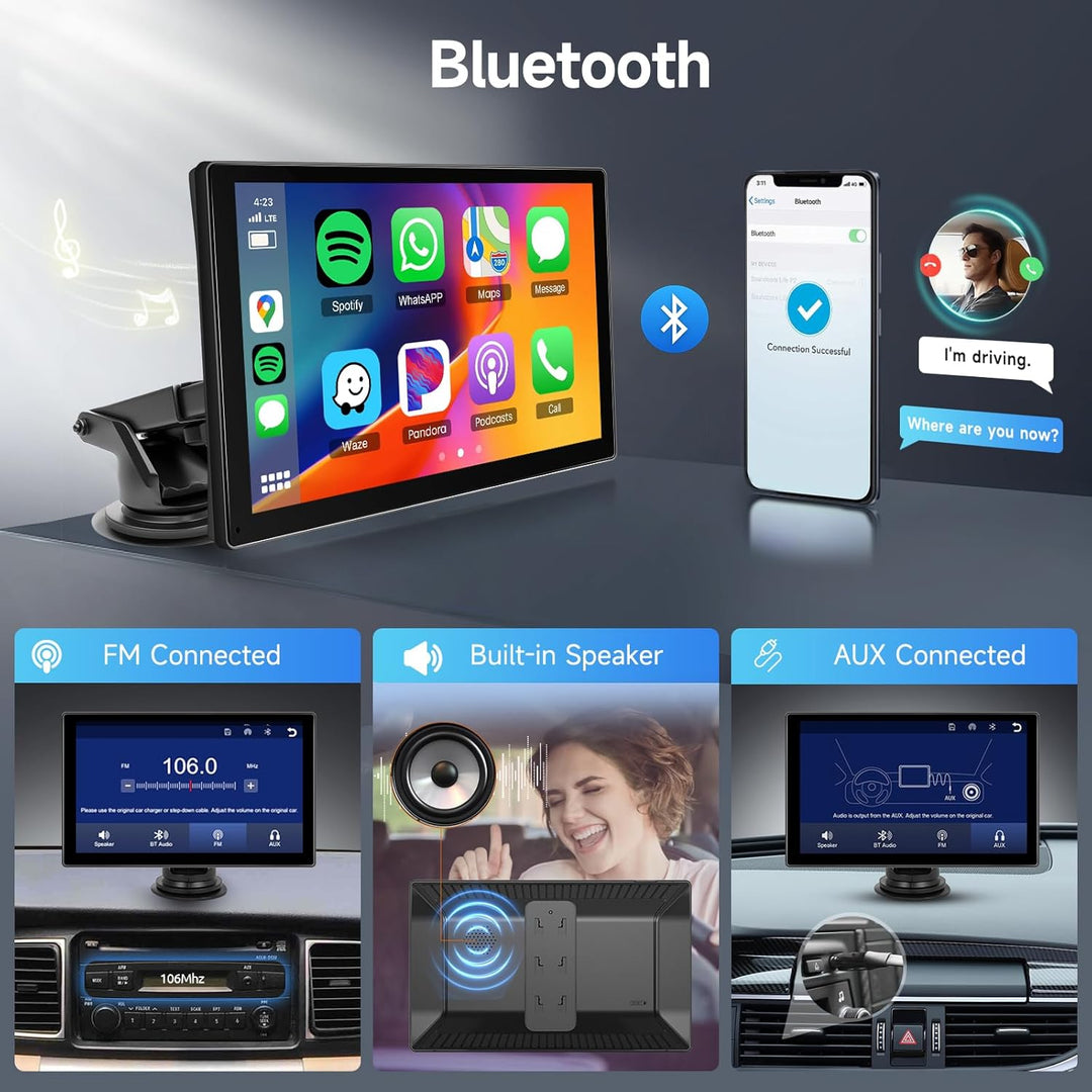 - 2,5D-Display und Audio:Unser tragbares Autoradio mit 9-Zoll-HD-Touchscreen bietet ein lebendiges und klares Display, mit dem Sie ganz einfach durch Ihre Medien navigieren und Ihre Audioeinstellungen steuern können. Mit den integrierten Lautsprechern