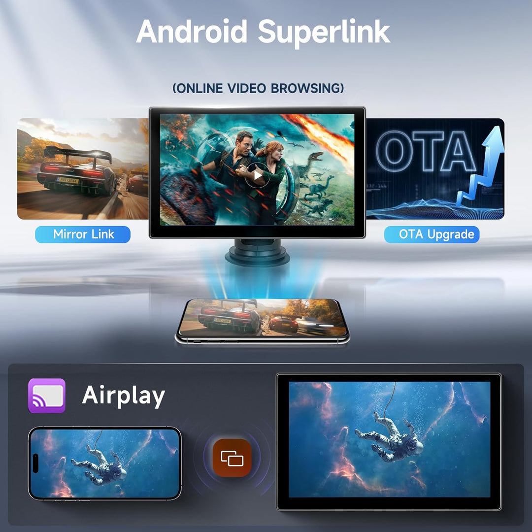 - Verbesserte Konnektivität mit AirPlay/Super Link:Die AirPlay/Super Link-Funktion unseres Systems bietet eine verbesserte Verbindung zwischen Ihrem iOS- oder Android-Gerät und dem Audiosystem Ihres Fahrzeugs. Das tragbare Autoradio unterstützt