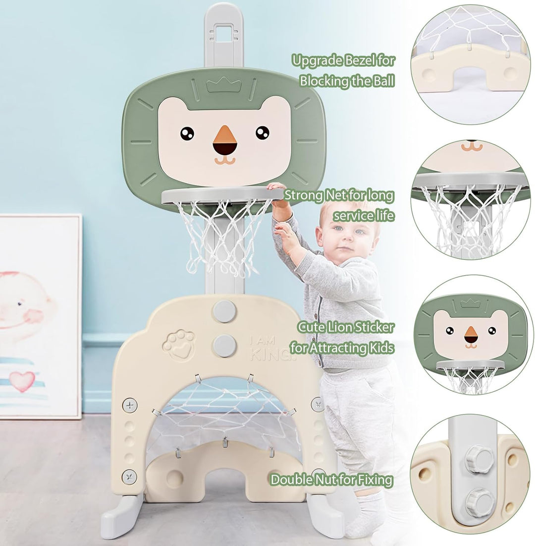HOMASIS 3 in 1 Kinder Basketballkorb Set, multifunktionaler Basketballständer mit Fussballtor & Golf