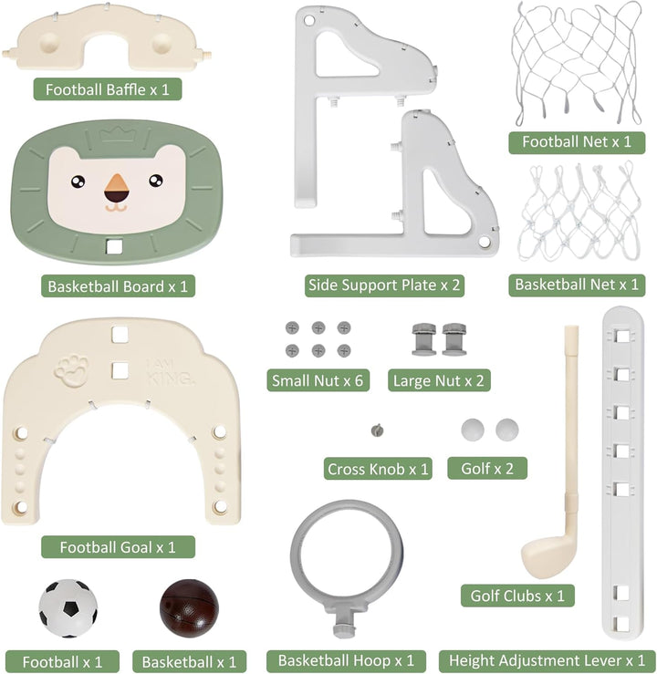 • 3-IN-1-SPORTSPIELPLATZ: Dieses Sportgerät für Kinder kombiniert einen Basketballkorb, einen Fussball und einen Golfball in einem Gerät und bietet einen Basketball, einen Fussball, einen Golfball und einen Golfschläger, so dass Kinder den Spass an
