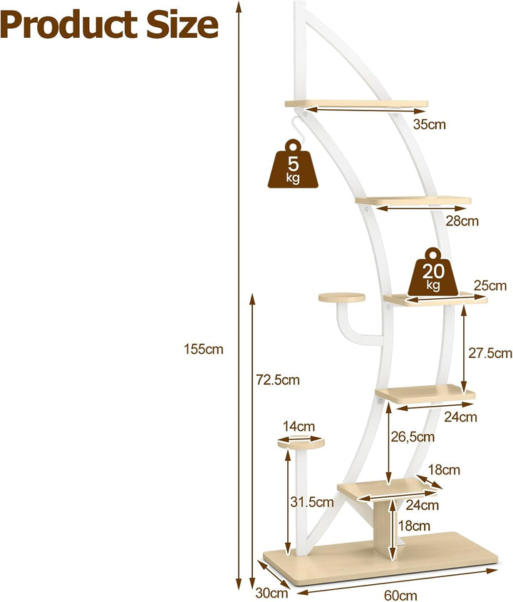 • 🌻~Grosser Speicherplatz~ Der Pflanzenständer enthält 7 Fächer und einen Haken, jedes Fach kann 20 kg tragen, der Haken kann 5 kg tragen, es kann Ihren grossen Speicherbedarf decken.