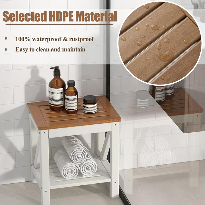 - 🛀🏻~Hochwertiges Material~Dieser Badhocker besteht aus HDPE, das nicht nur umweltfreundlich, sondern auch wasserdicht und mottensicher ist. Gleichzeitig ist der Badhocker leicht zu reinigen, so dass er ideal für den Einsatz im Badezimmer ist.