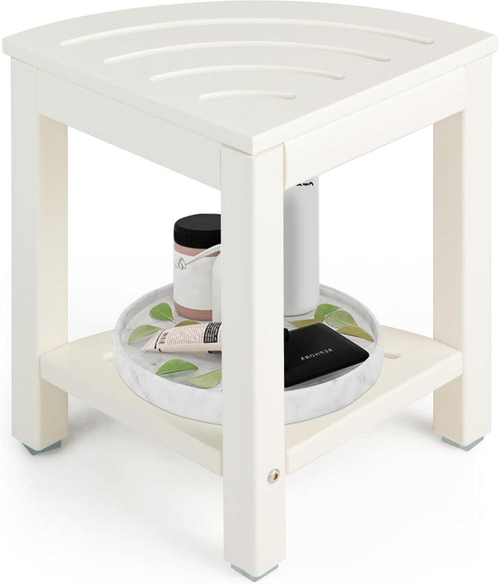 HOMASIS Eck Duschhocker mit 2 Ebenen, fächerförmiger Badehocker aus HDPE, Duschstuhl mit Entwässerun