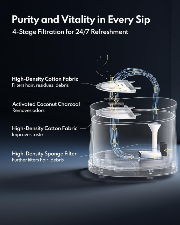 - 【Ultimative Stille】Unsere 20dB Flüsterstille wird weltweit von Kunden geschätzt. Der Wasserbrunnen mit superleiser Pumpe und 20 geräuschreduzierten Wasserwegen schafft eine beruhigende Umgebung unter 20 dB. Er lässt sich problemlos im