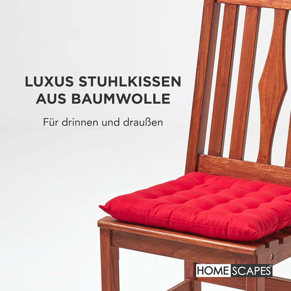 - Ideal sowohl für Gartenstühle als auch Esszimmerstühle und einfach mit Knöpfen zu befestigen. Diese quadratischen Stuhlpolster sind einzeln, in 4er oder 6er Sets erhältlich und pflegeleicht bei 40 Grad in der Waschmaschine waschbar.