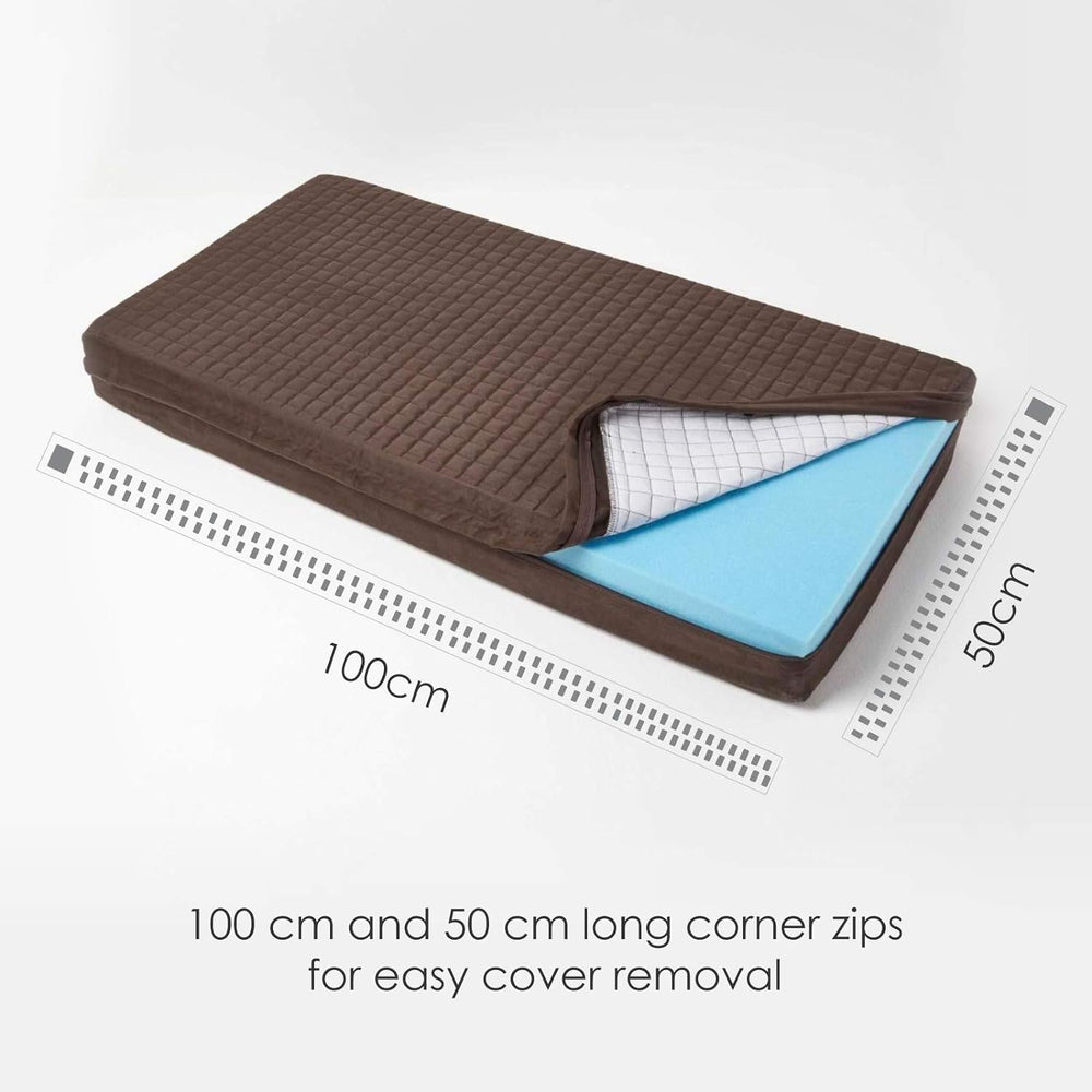 - Dick und fest gepolstertes langes Sitzkissen für 2-Sitzer-Sofas aus orthopädischem Schaumstoff mit abnehmbarem Velours-Bezug und praktischem Tragegriff. Grösse ca.: B 100 x T 50 x H 10 cm. Farbe: Braun.