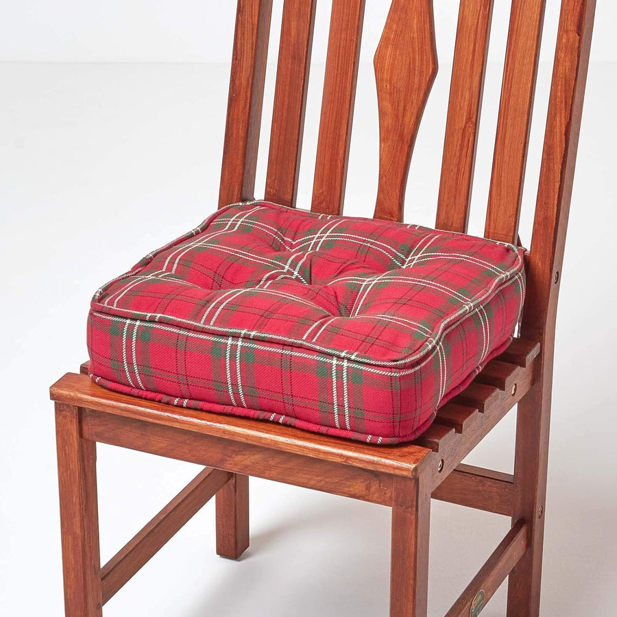 - Extra hohes Sitzkissen mit Befestigungsbändern und Bezug aus 100% Baumwolle. Masse: ca. 40 x 40 cm, Höhe ca. 10 cm. Farbe: rot-grün.