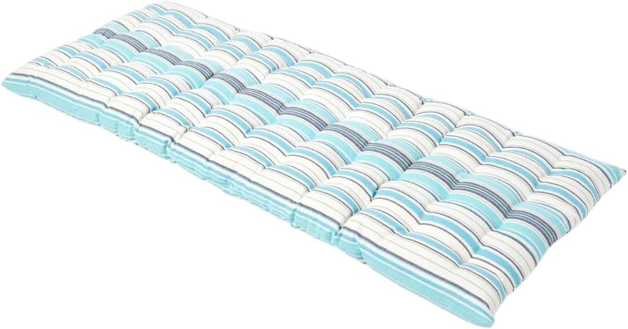 - Sitzbankauflage für 2-Sitzer Bänke. Grösse: ca. 108 x 42 x 5 cm. Mehrfarbig: blau-weiss.