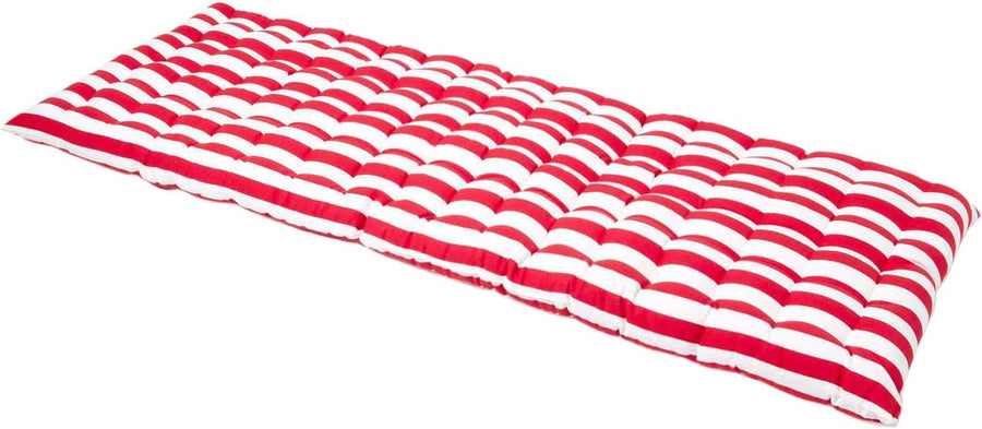 - Sitzbankauflage für 3-Sitzer Bänke. Grösse: ca. 143 x 48 x 5 cm. Zweifarbig: rot-weiss gestreift.