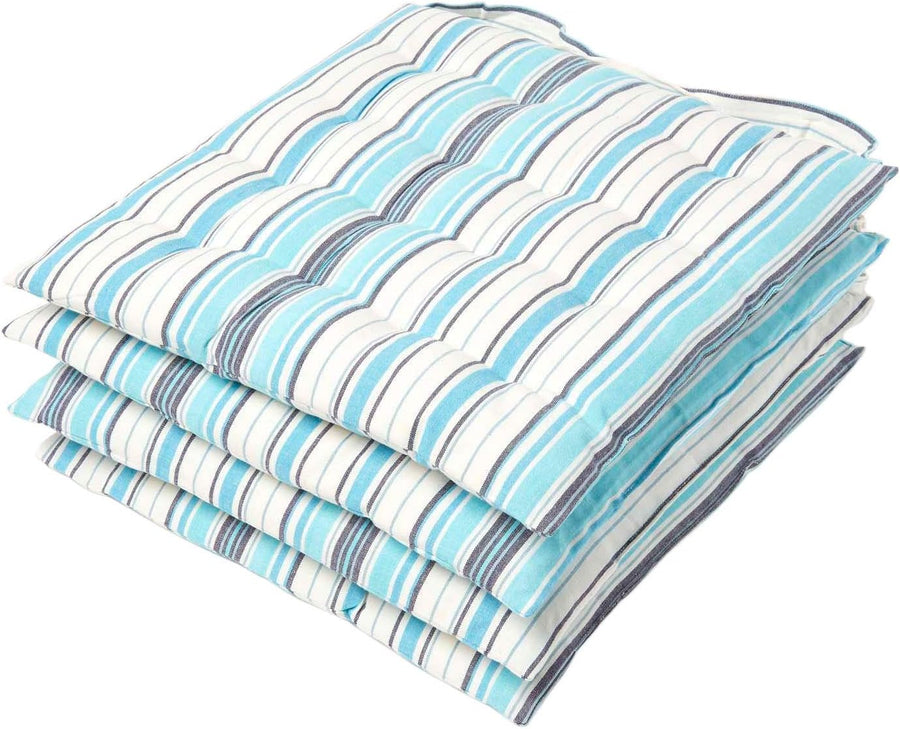 - Set aus 4 Sitzkissen mit Bändern und praktischem Knopfverschluss. Grösse: ca. 40 x 40 x 5 cm. Mehrfarbig: blau weiss.