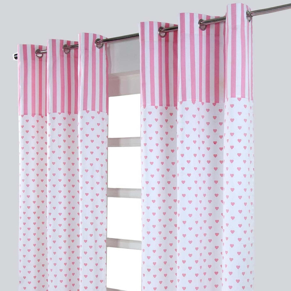 - Dekorativer Ösenvorhang bedruckt Herzen pink aus 100% reiner Baumwolle
